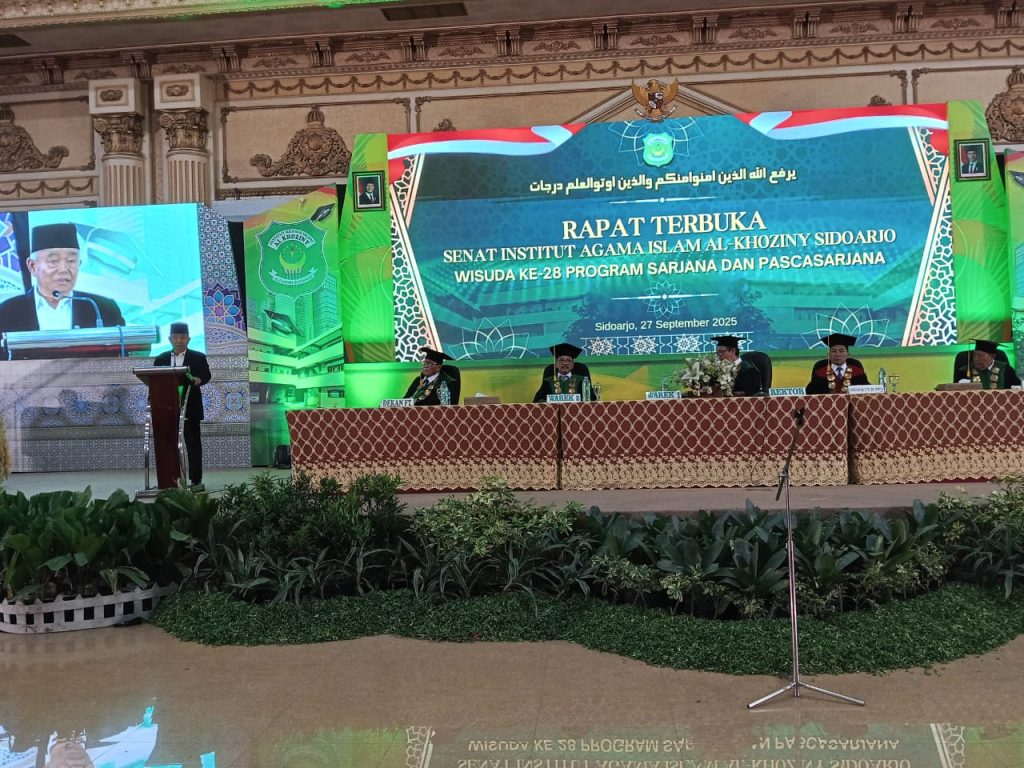 Sabtu, 27 September 2025, menjadi hari yang penuh kebanggaan bagi keluarga besar Institut Agama Islam (IAI) Al Khoziny. Bertempat di hotel Utama, Juanda, digelar Wisuda ke-28 yang diikuti oleh 408 mahasiswa dari jenjang sarjana maupun magister. Suasana acara tidak hanya meriah, tetapi juga khidmat, mengingatkan bahwa wisuda bukan sekadar perayaan kelulusan, melainkan momen sakral penyerahan amanah ilmu untuk diamalkan di tengah masyarakat.