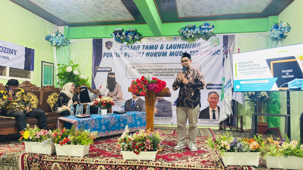 Sidoarjo — Badan Eksekutif Mahasiswa (BEM) Institut Agama Islam (IAI) Al-Khoziny menggelar kuliah tamu sekaligus melaunching Forum Peduli Hukum Muda Sidoarjo dengan mengusung tema “Ironi Ruang Aman: Mengapa Perempuan dan Anak Masih Terancam”. Kegiatan yang berlangsung pada Jumat, 31 Januari 2026 ini menjadi ruang diskusi dan refleksi atas masih maraknya kasus kekerasan terhadap perempuan dan anak.
